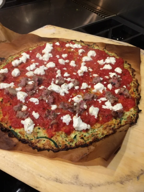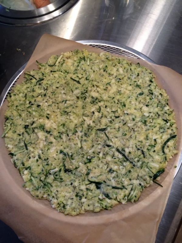 Rather than trying to perfect the blend of oat flour, almond flour, chickpea flour (etc.) -- the balancing act of producing quality gluten-free pizza -- I took a different route: vegetable-crusted pizza.