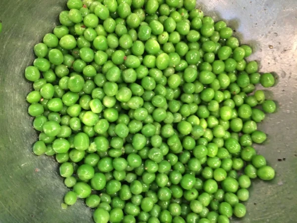 I blanched the peas for about 30 seconds and shocked them in ice water to stop the cooking and keep them bright green.